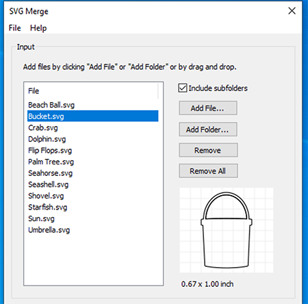 Add File: Click Add File to bring up a file choose window to choose SVG files to add.